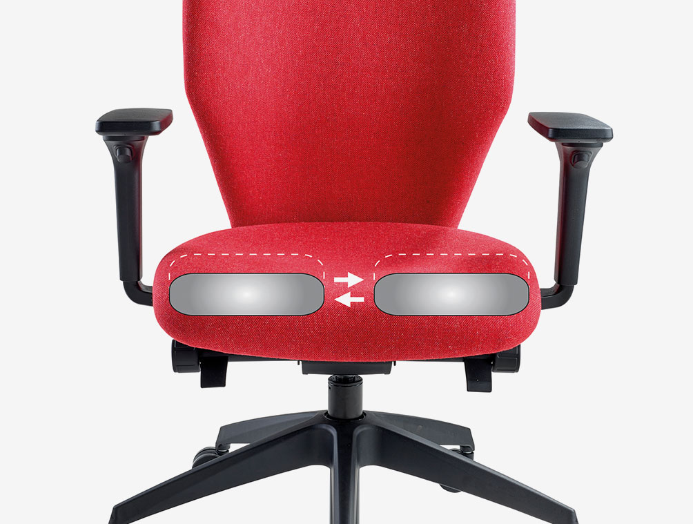 Polished chrome base, seat slide, folding arms, Inflatable lumbar support.