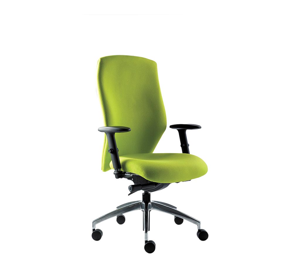 Extra high back, fully upholstered luxurious executive chair. Large adjustable seat with "waterfall" front edge for extra comfort. Height adjustable arms.