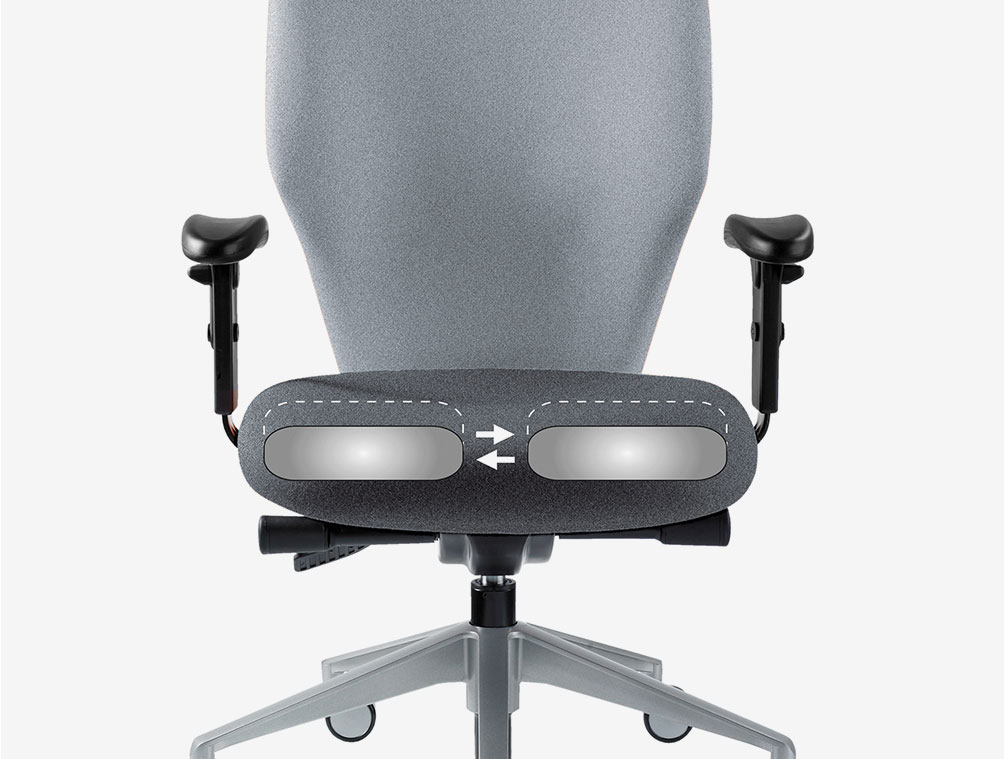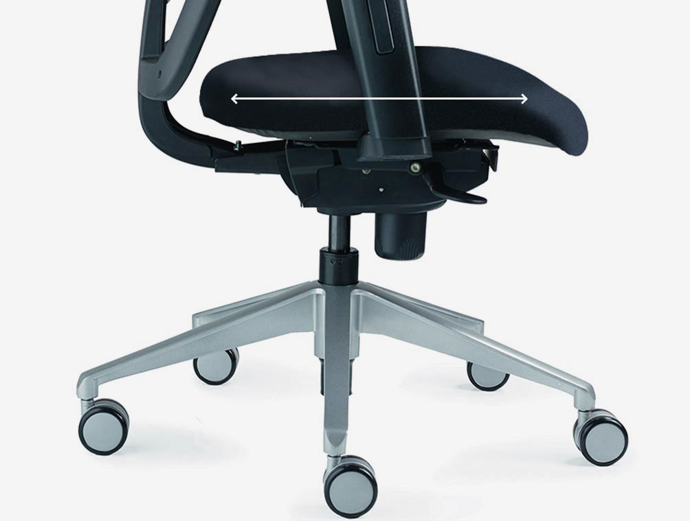 Polished base, Seat slide, Inflatable lumbar support, folding and height adjustable arms. XL Seat.