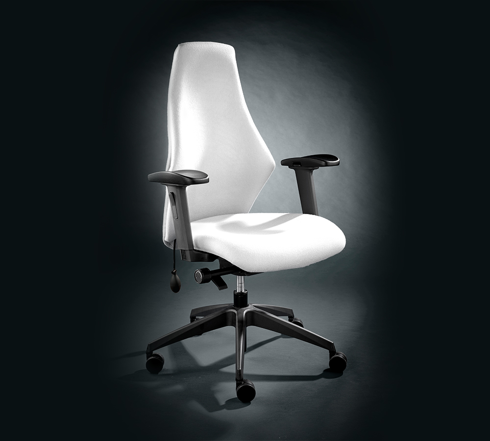 Extra high sculptured back, ergonomic task chair. Large, supportive seat pad, weight tensioned synchronised mechanism. Seat depth adjustment. 5 star base with 60mm hard wheeled castors.